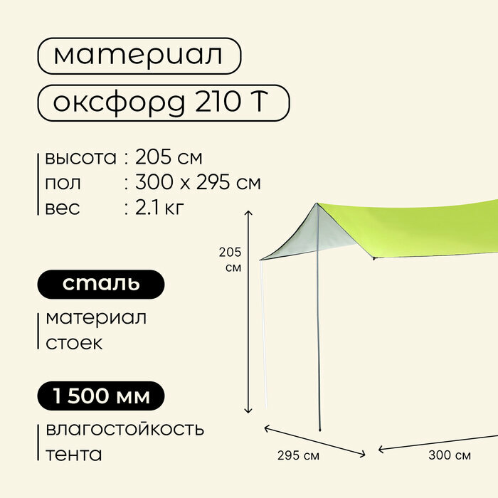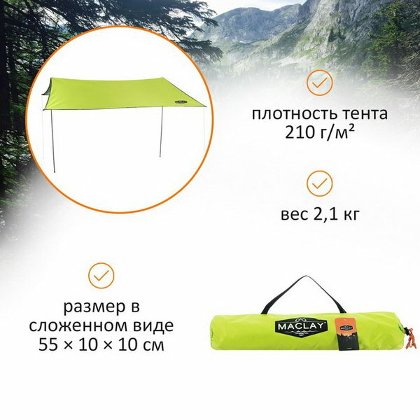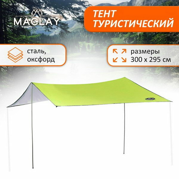 Тент туристический 300х295 см, 210Т, PU1500 мм, зеленый Maclay 9305005 .