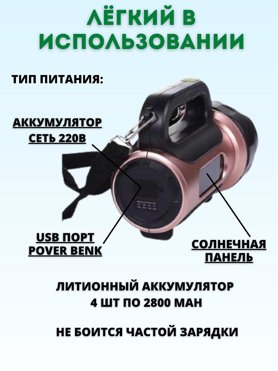 Фонарь светодиодный аккумуляторный ручной на солнечной батарее 7 режимов работы c функцией Power bank интересное: