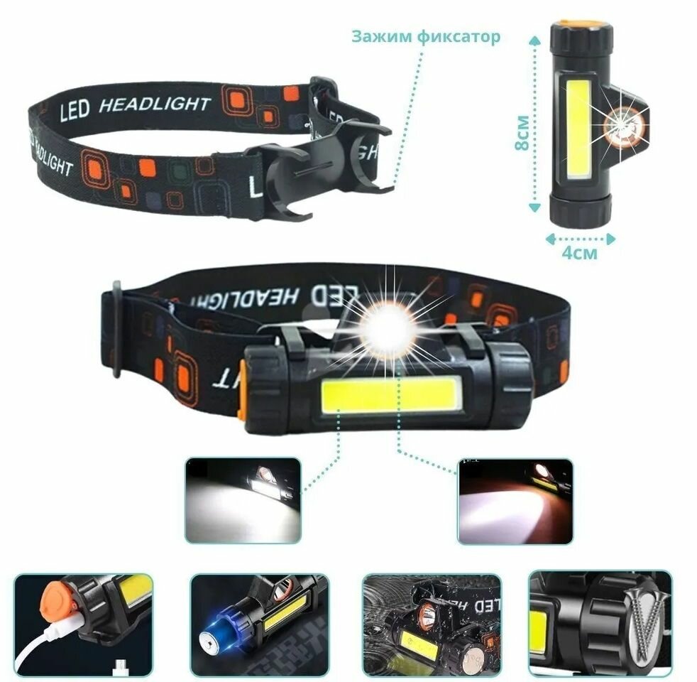 СохранитьНалобный светодиодный фонарь с магнитом, регулировкой угла свечения и диммированием COB светильника, cо встроенным аккумулятором и зарядом от USB, кабель USB и АКБ в комплекте. интересное: