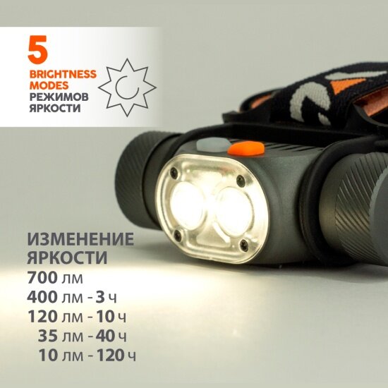 Фонарь налобный Яркий Луч PANDA 2M-CRI , max.700лм, 5 реж., магнит интересное: