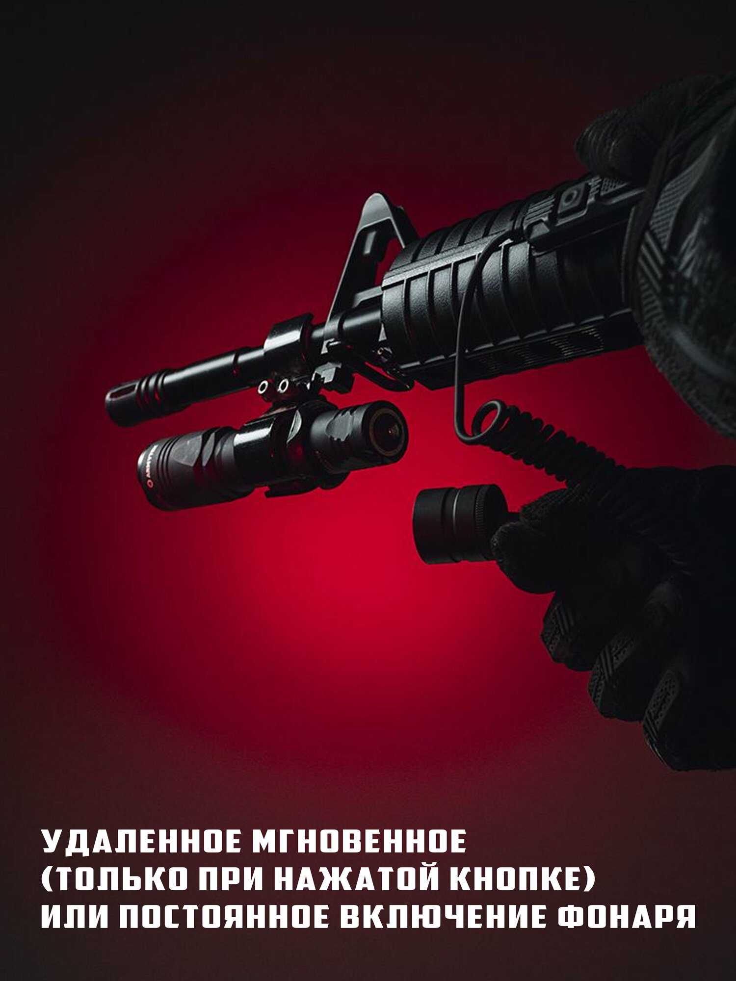 | Плюсы: | Хорошее дополнение к подствольному фонарю. В комплекте идёт липучка на велкро для кнопки. Можно приклеить на цевьё ружья. |