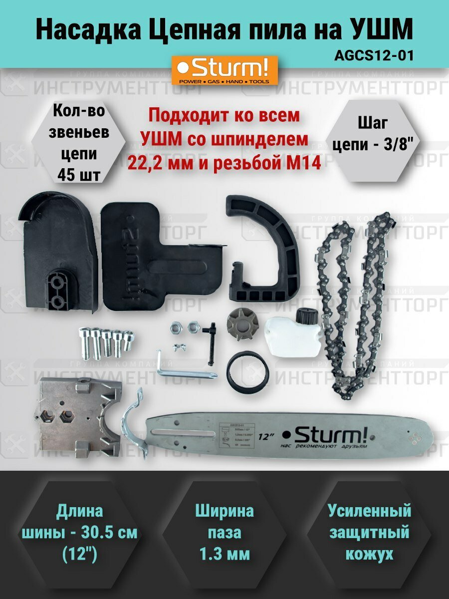 Насадка для УШМ Пила цепная Sturm, 12", AGCS12-01 интересное: