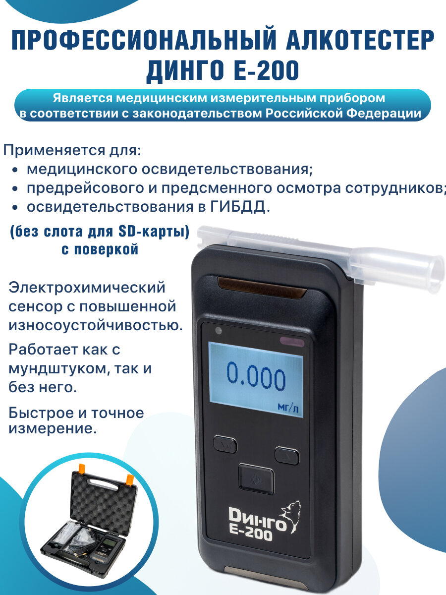 Алкотестер Динго/Dingo Е-200 с поверкой без слота для SD-карты