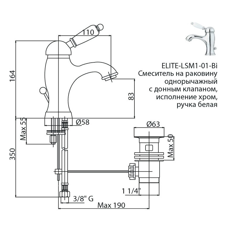 Смеситель Cezares Elite ELITE-LSM1-01-Bi для раковины с донным клапаном