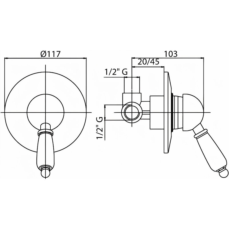 Встраиваемый однорычажный смеситель для душа Cezares ELITE-DIM-02-M бронза