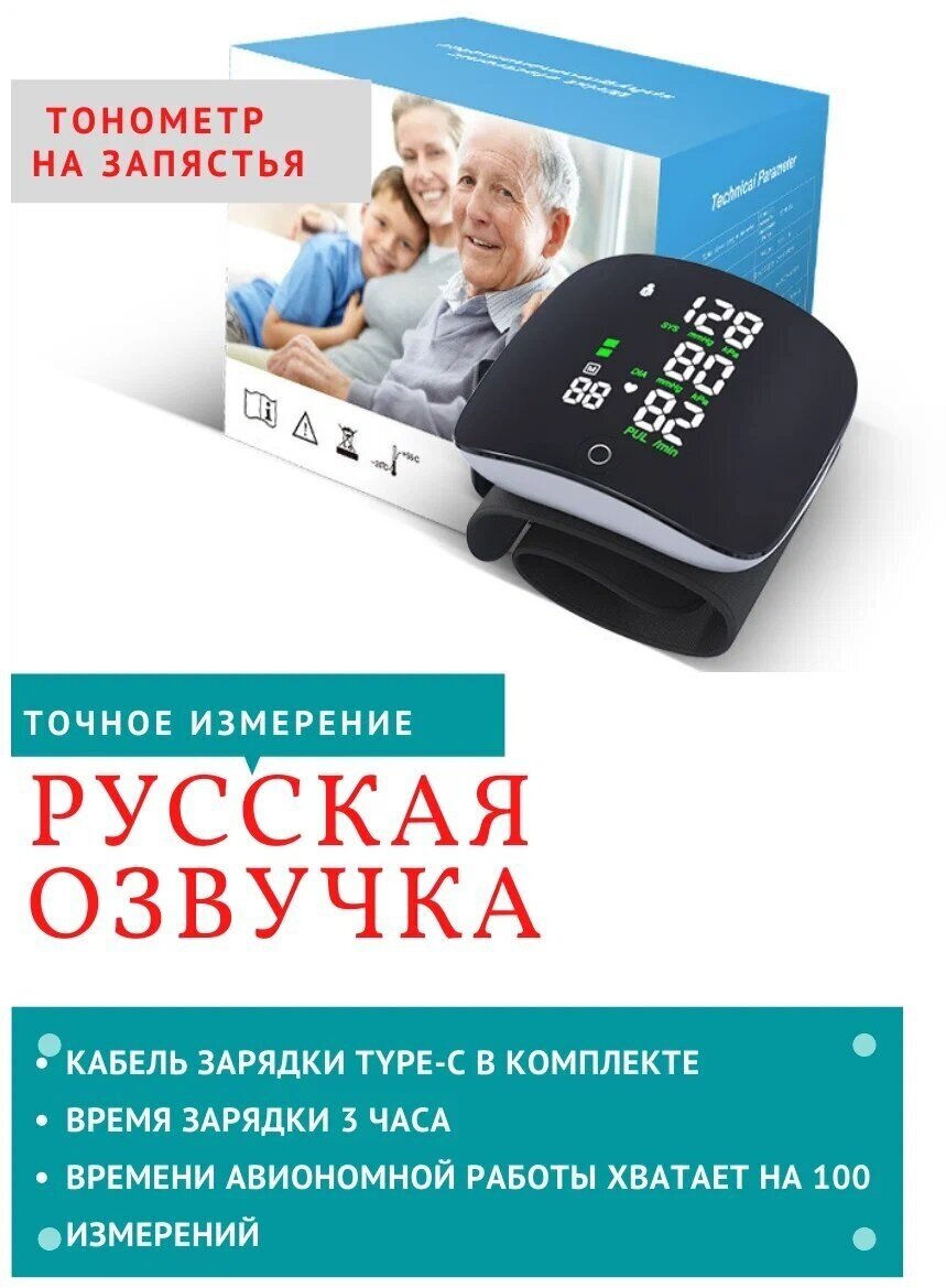 Тонометр русскоговорящий, тонометр автоматический, тонометр на запястье, ЖК экран, голосовое оповещение, 99 ячеек памяти интересное:
