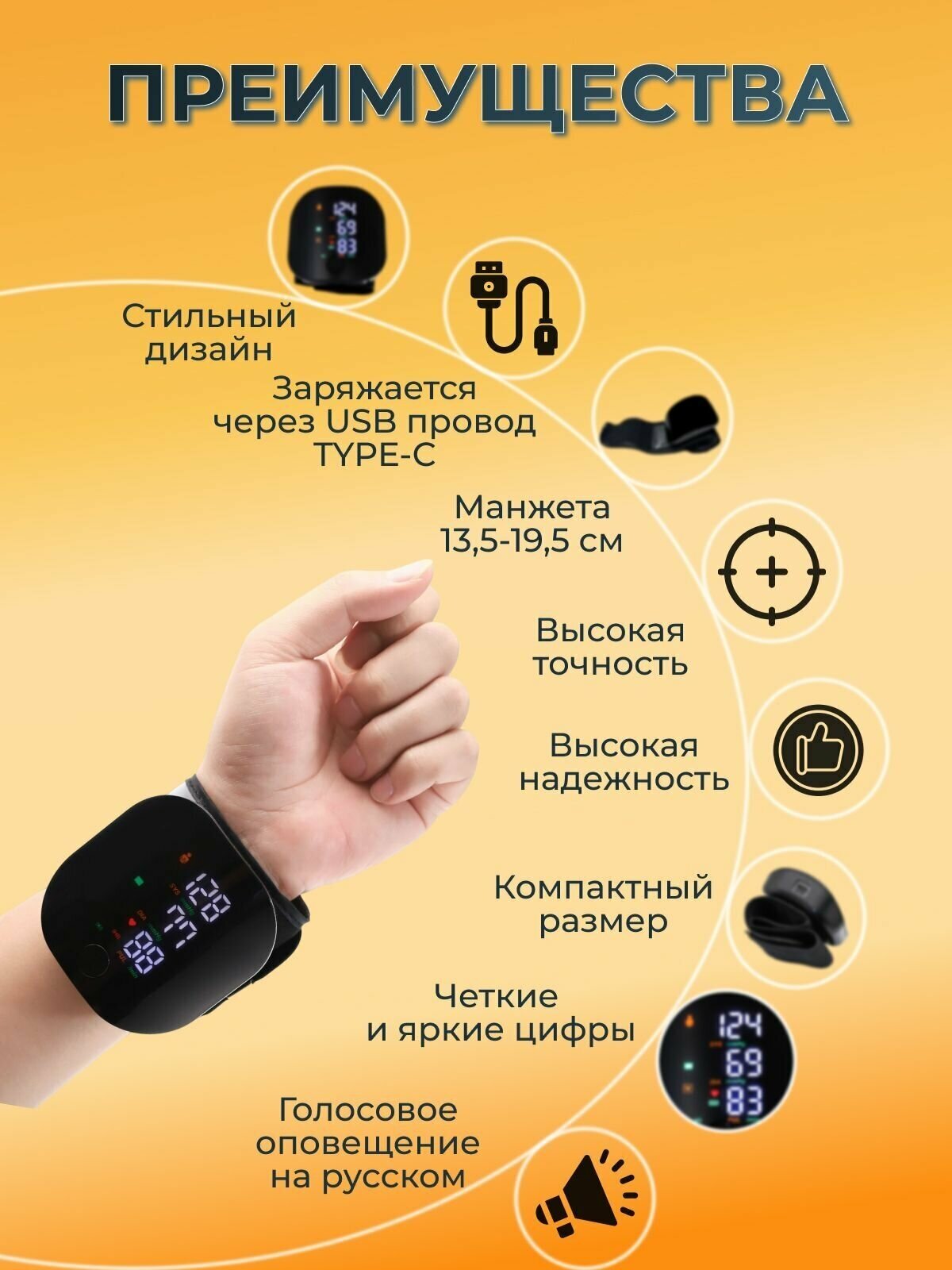 Электронный цифровой тонометр сфигмоманометр на запястье AMT-ck502s. Аккумулятор 300mah интересное: