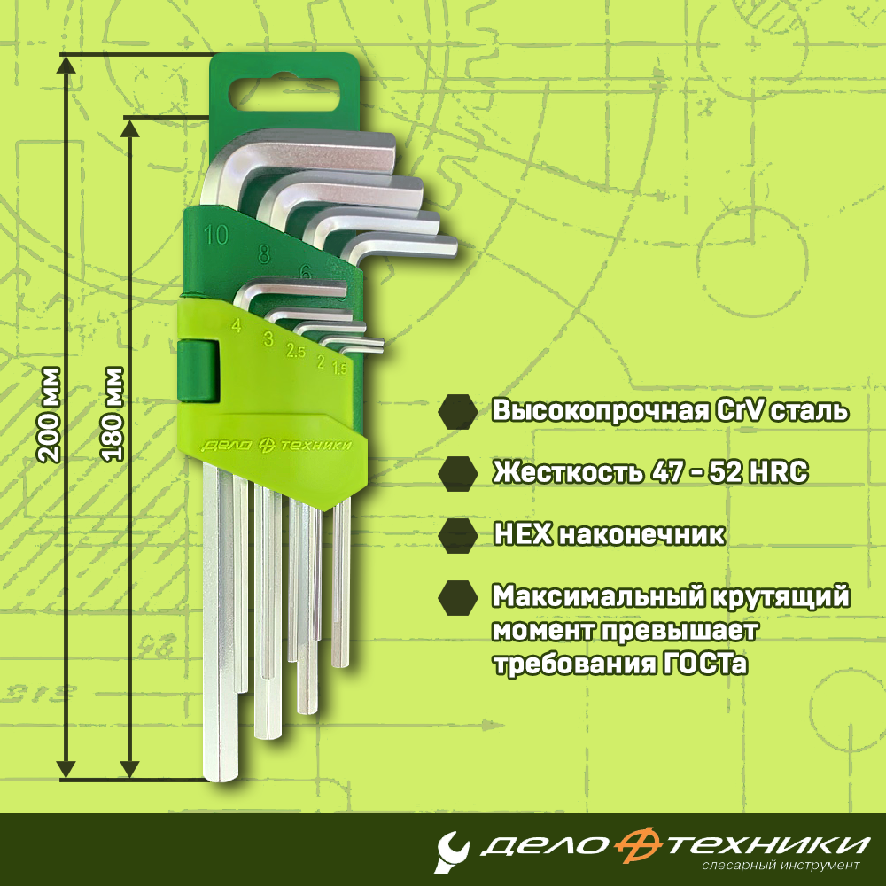 Дело техники 561091 Набор ключей шестигранных (1.5,2,2.5,3,4,5,6,8,10 мм) 9 шт.