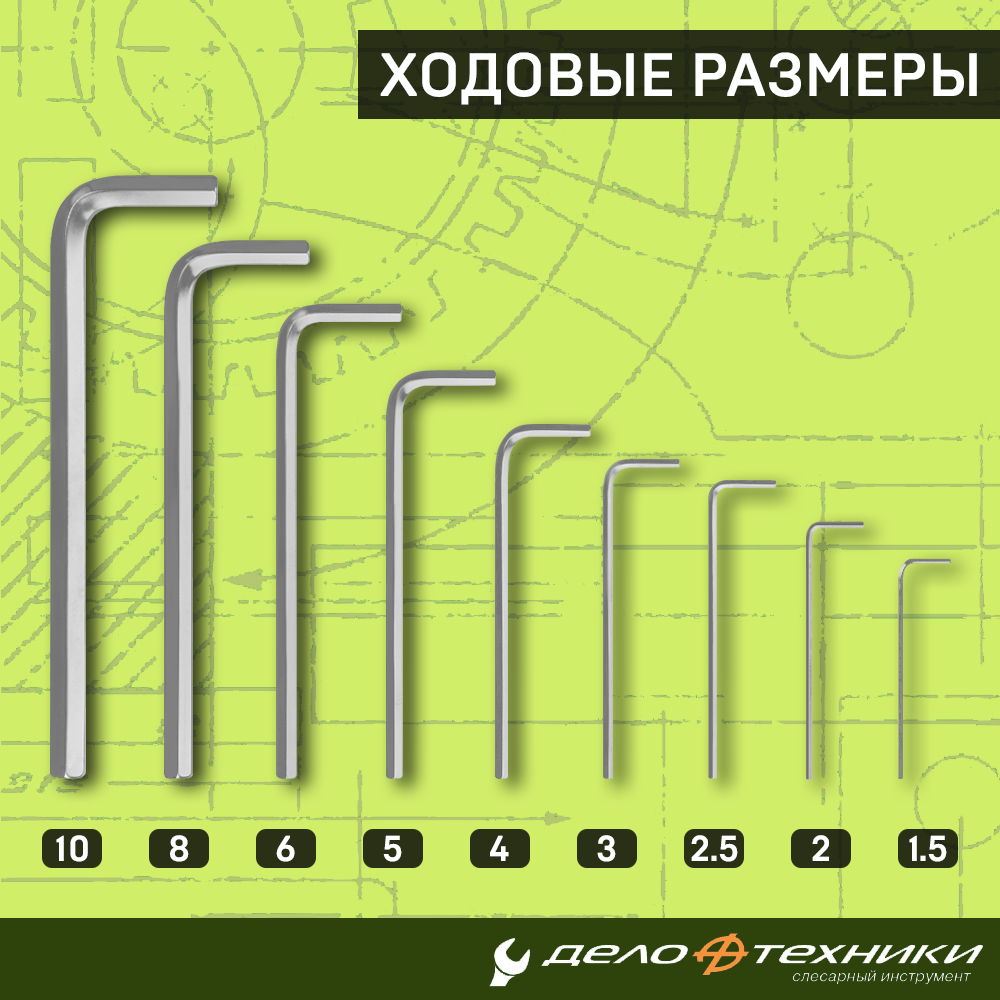 Набор Ключей Шестигранных 9Шт. (1.5, 2, 2.5, 3, 4, 5, 6, 8, 10 Мм) Дело Техники арт. 561091