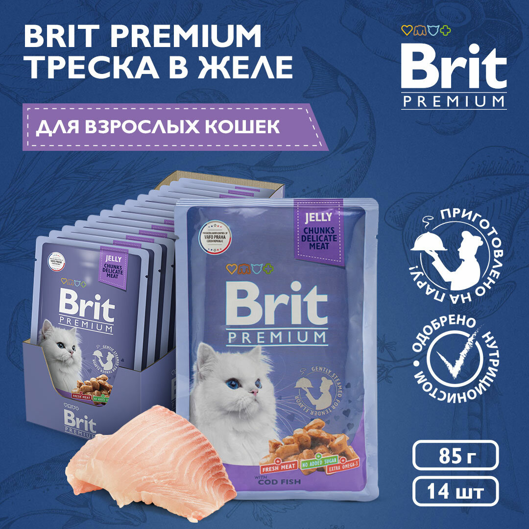Консервированный корм BRIT PREMIUM для взрослых кошек c треской в желе (85 гр х 14 шт)