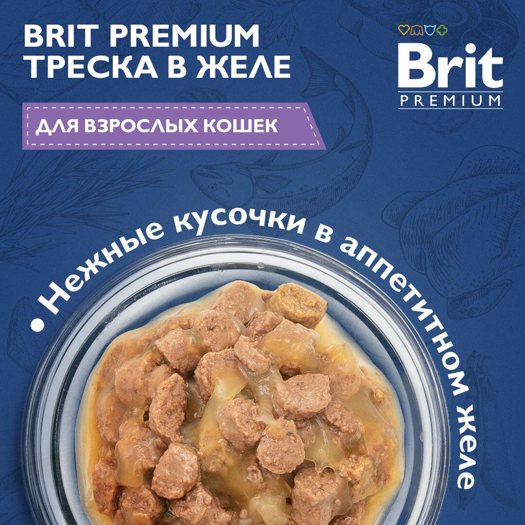 BRIT PREMIUM для взрослых кошек c треской в желе пауч 85 гр 85 гр х 4 шт