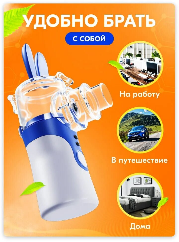 Портативный мембранный небулайзер GadFamily. Бесшумный ингалятор с 3 насадками и работой от батареек и от сети. интересное: