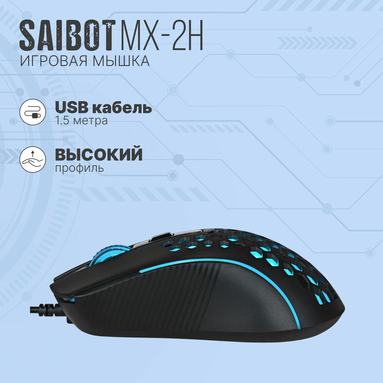 Мышь Saibot MX-2, игровая, проводная, 4 кнопки, 3600 dpi, USB, подсветка, чёрная