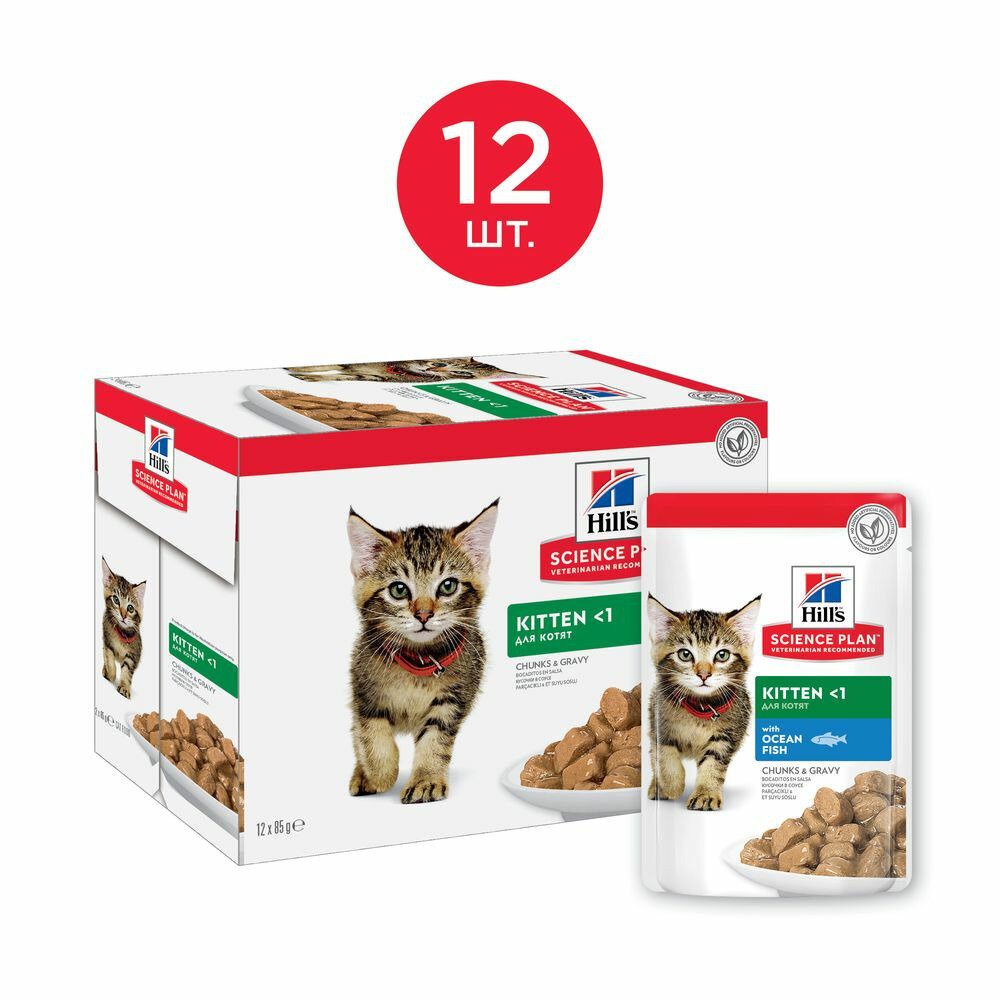 Влажный корм Hill's Science Plan для котят для здорового роста и развития, пауч с океанической рыбой в соусе, 85 г. x 12 шт.
