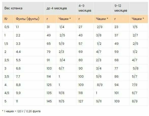 | Возраст животного | взрослые (1-6 лет) / котята (до 1 года) |