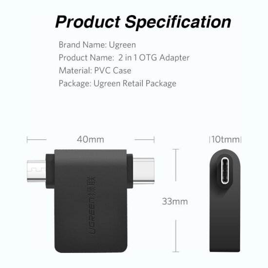 Купить Адаптер-переходник Ugreen 2 in 1 Adapter Micro USB + USB Type C to USB 3.0, черный