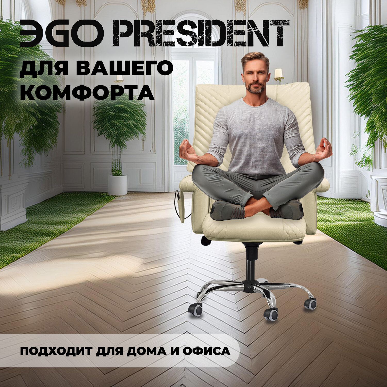 СохранитьОфисное массажное кресло EGO President EG1005 кремовый интересное: