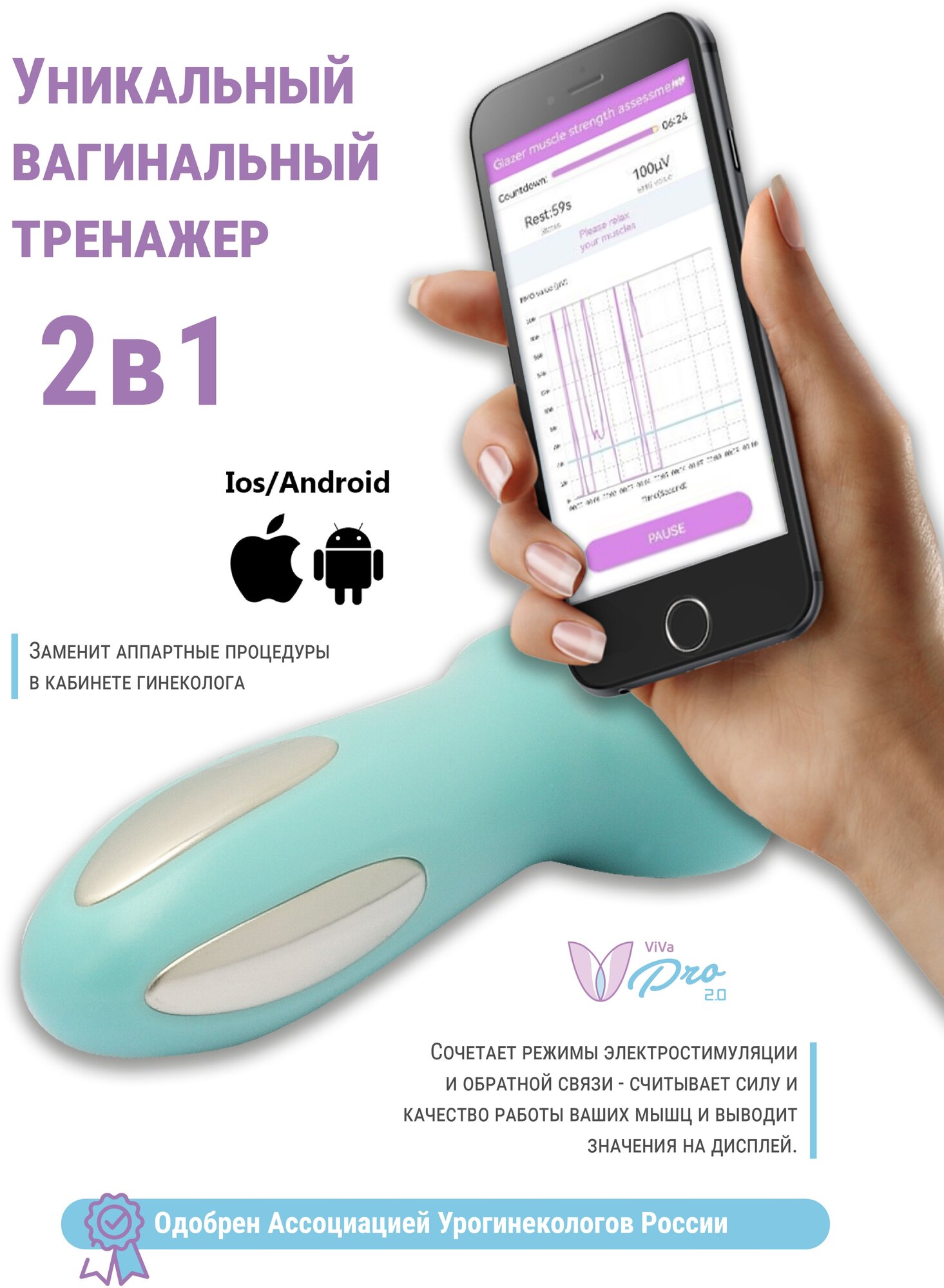 Вагинальный тренажер Viva V-Pro 2.0, Миостимулятор для укрепления интимных мышц таза, Кегеля 18+ интересное: