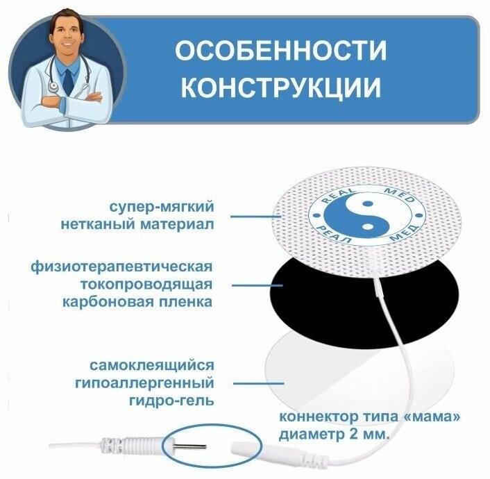 Косметик электроды для EMS массажера диаметр 3.2 см, голубые, 2 шт. интересное: