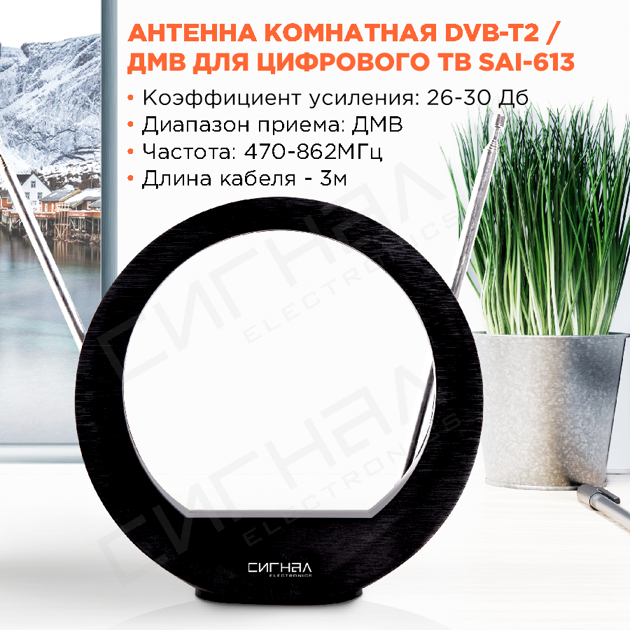 Сигнал SAI-613 Dvb-t2/дмв+мв, активная .