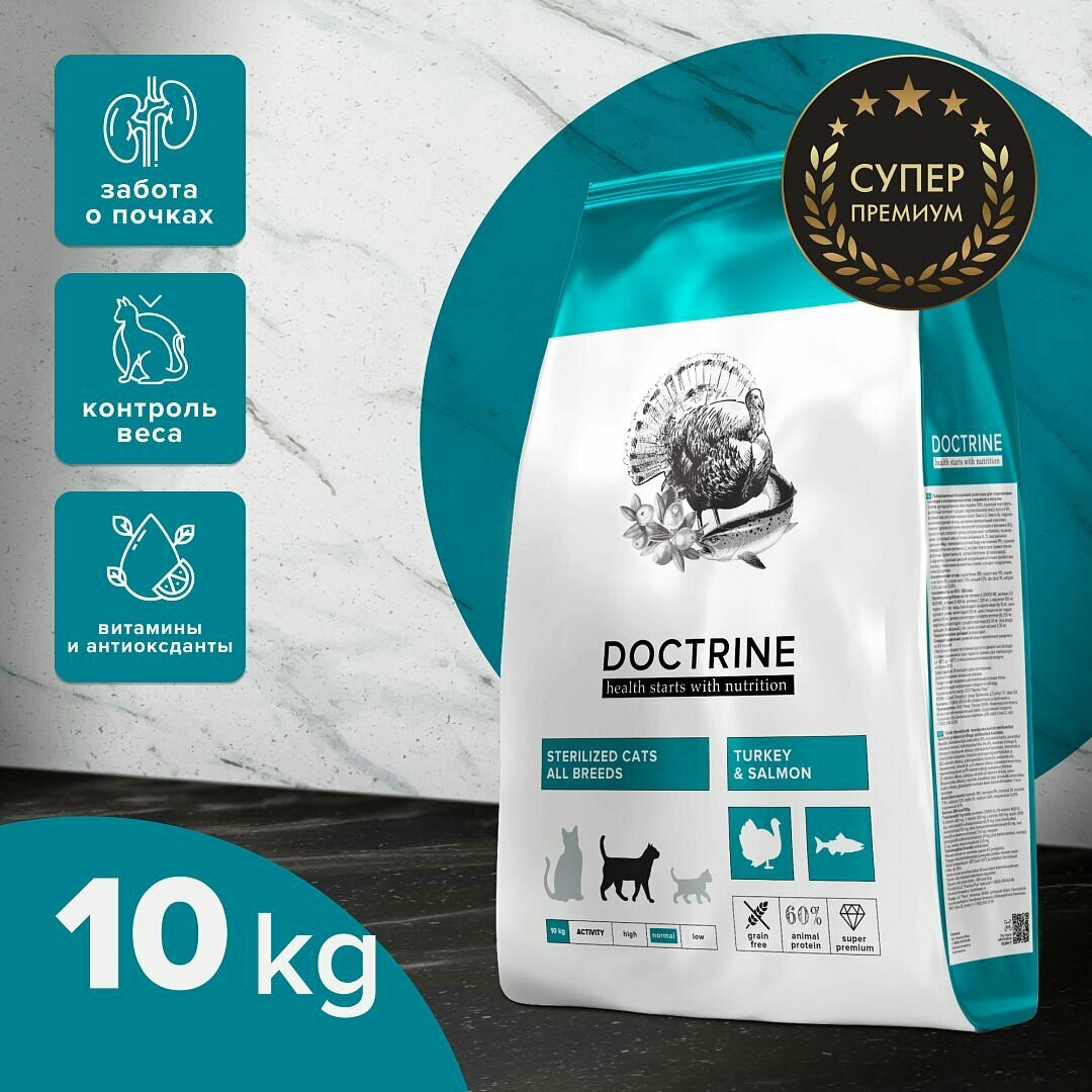 Сухой корм для кошек стерилизованных и кастрированных DOCTRINE индейка и лосось 10кг / доктрин, доктрина