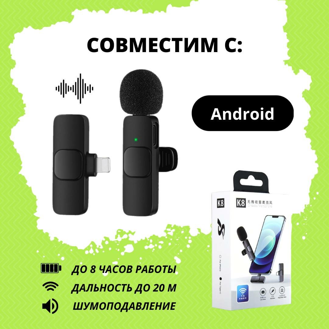 Беспроводной петличный микрофон K8 для устройств с разъемом Type-C интересное: