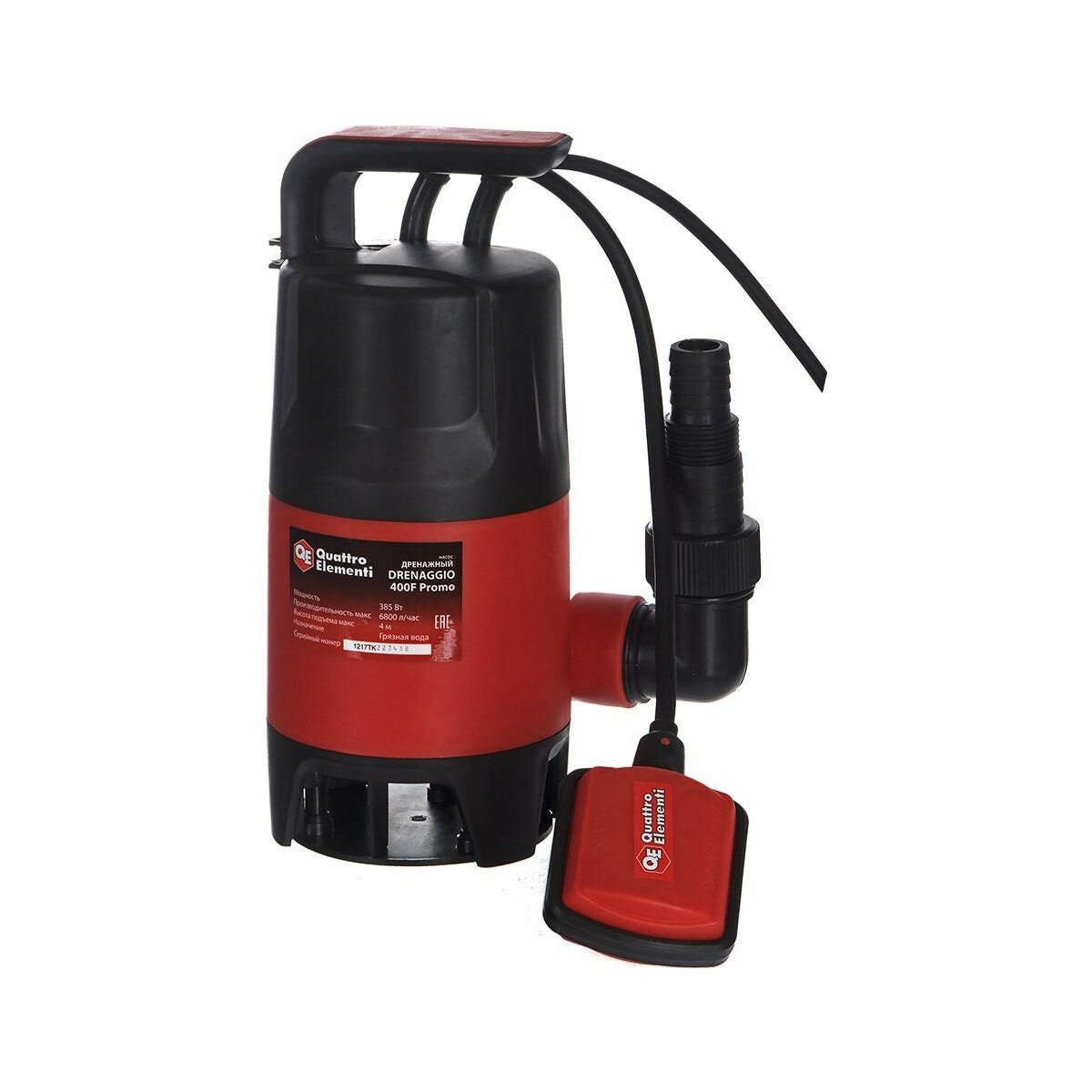 Насос дренажный QUATTRO ELEMENTI Drenaggio 400 F Promo(385 Вт, 6800 л/мин, для грязной, 4 м, )