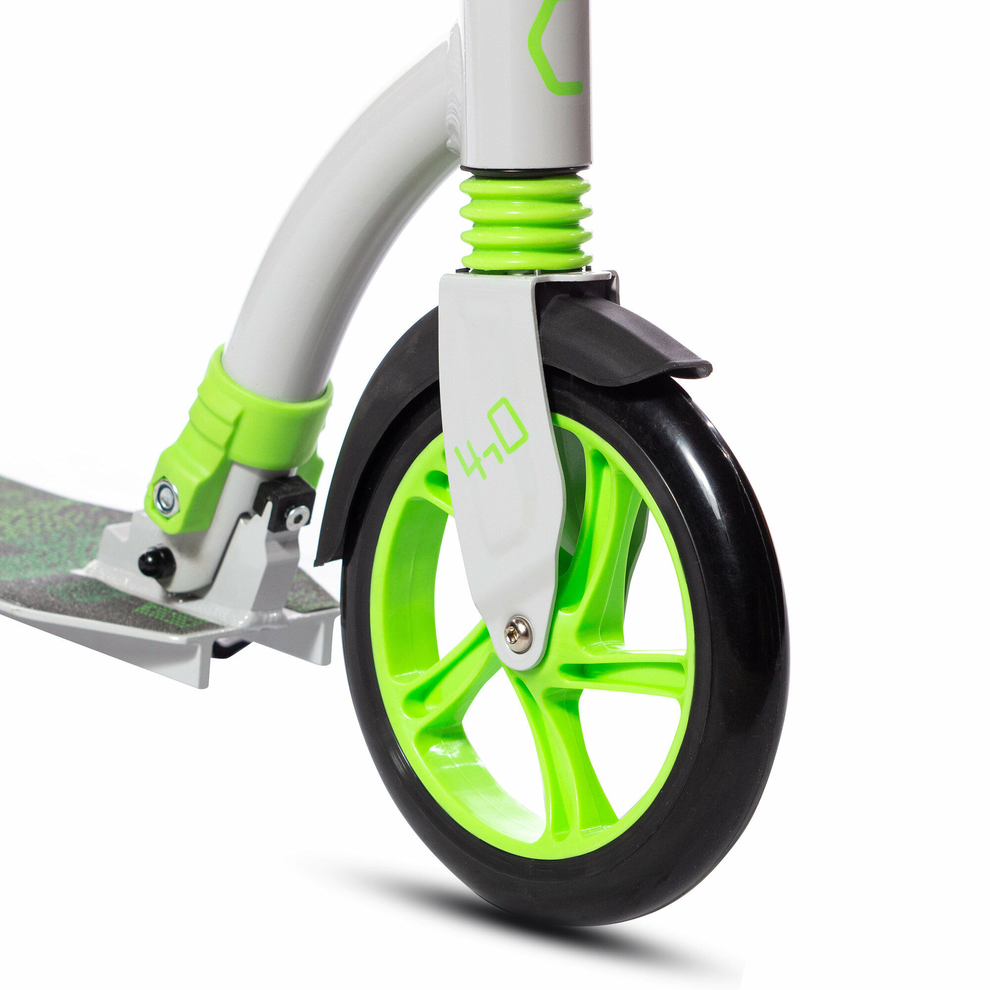 Самокат 00-180021 алюм. с амморт, 230+180мм подш.ABEC-9 до 100кг, новый широкий руль, серебристо-зеленый COD-X 4.0