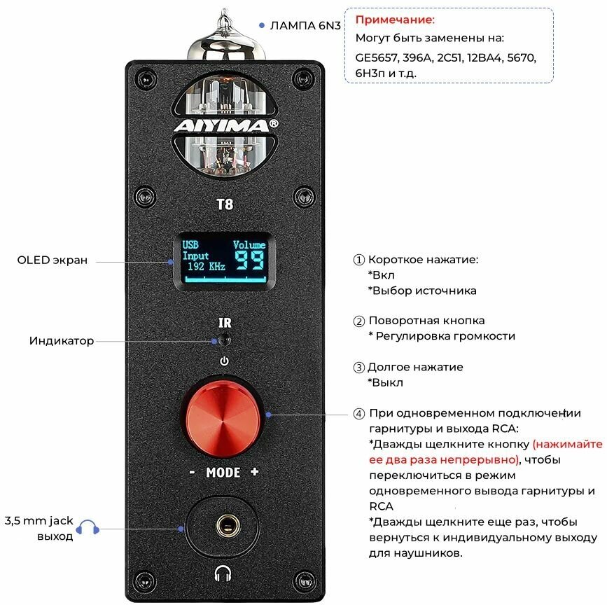 Ниже Вы можете прочитать отзывы на Предусилитель на лампе СССР с ЦАП AIYIMA T8 Bluetooth + блок питания, ознакомится с подробными характеристиками, посмотреть интересные обзоры и фотографии на Предусилитель на лампе СССР с ЦАП AIYIMA T8 Bluetooth + блок питания.