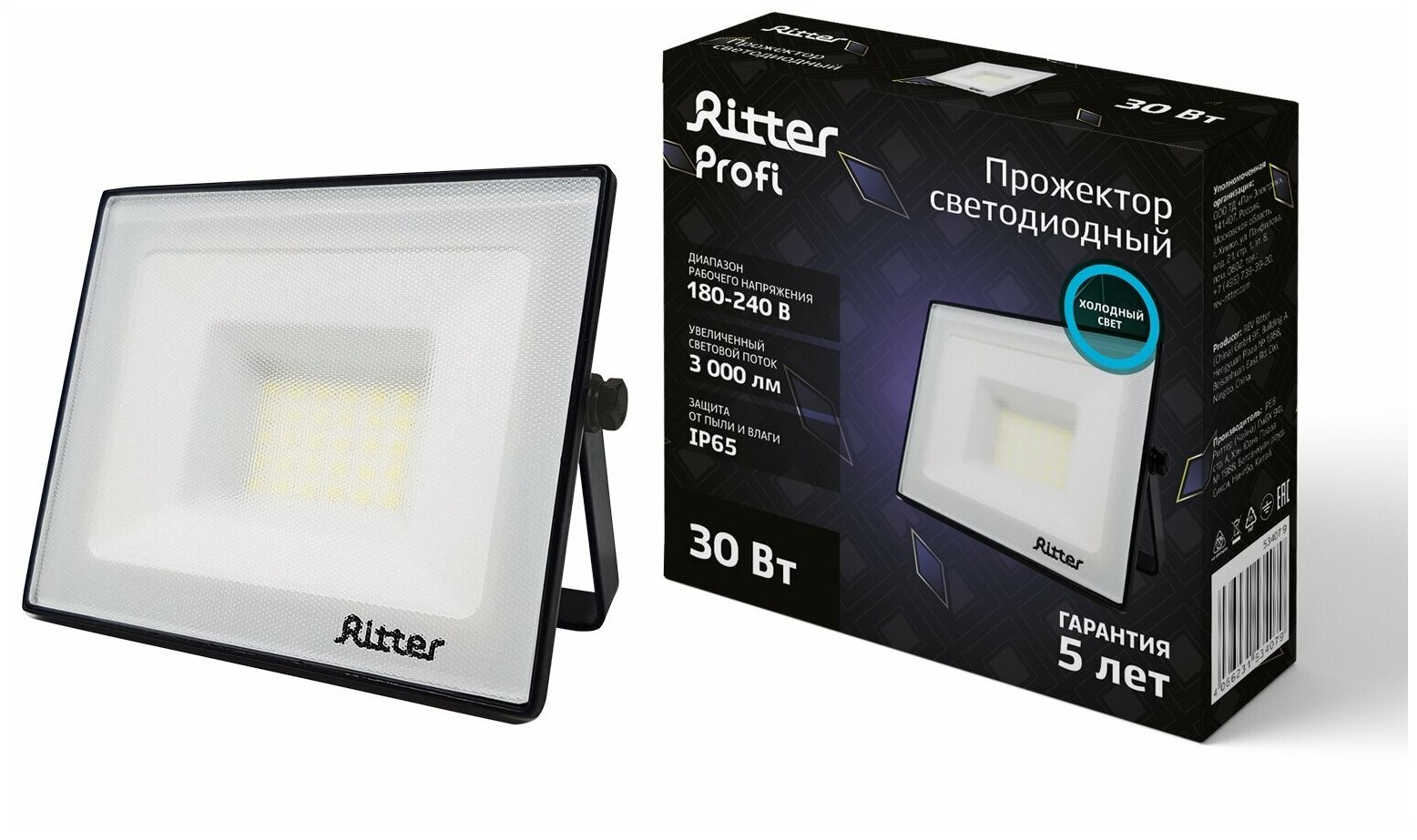 Ritter Прожектор светодиодный серия Profi 230В 30 Вт 6500К 3000Лм IP65 черный 53407 9 . интересное: