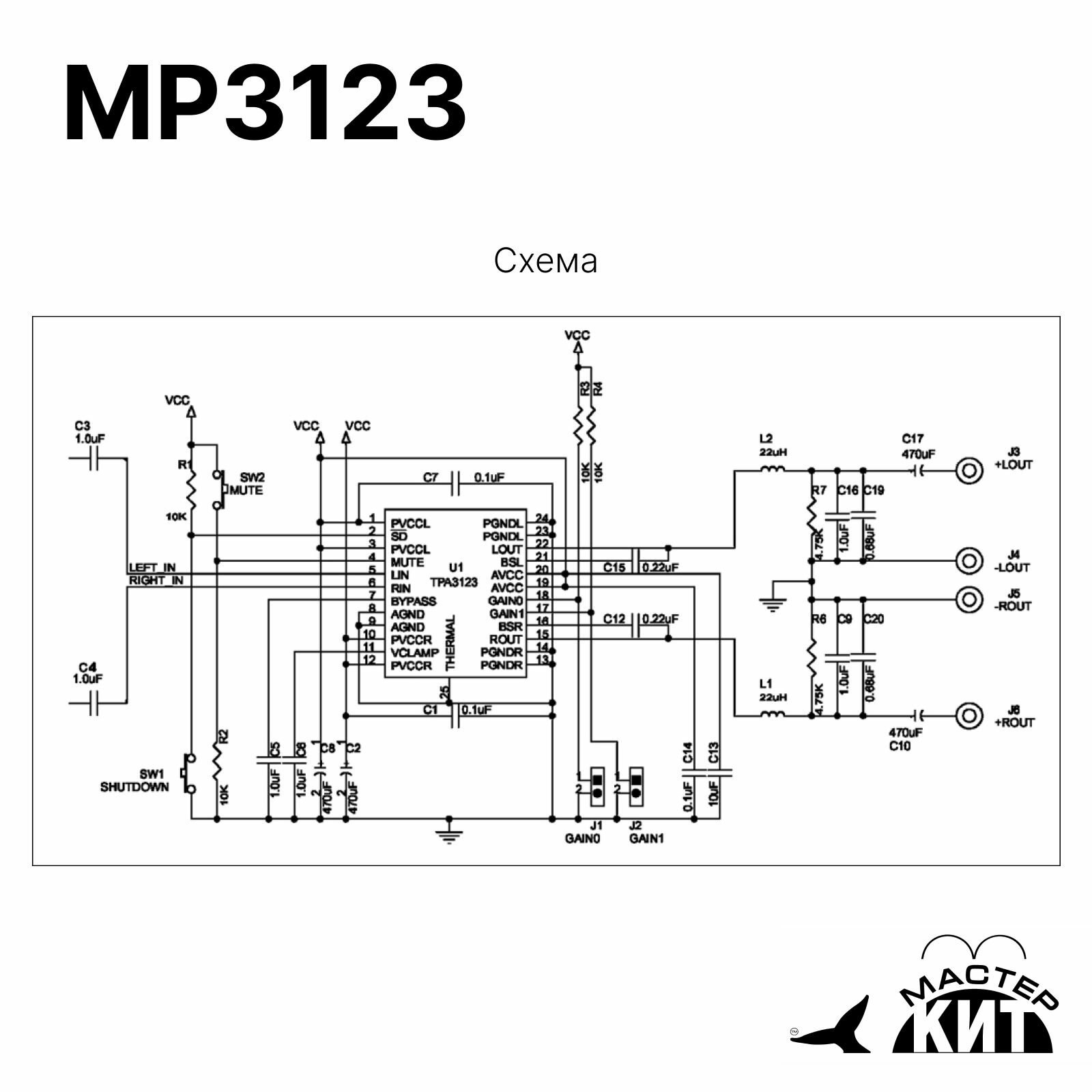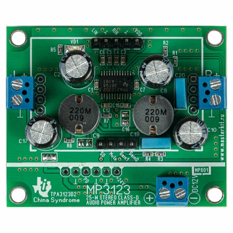 Усилитель НЧ цифровой 2x25 Вт, D-класс (TPA3123D2), MP3123 Мастер Кит интересное: