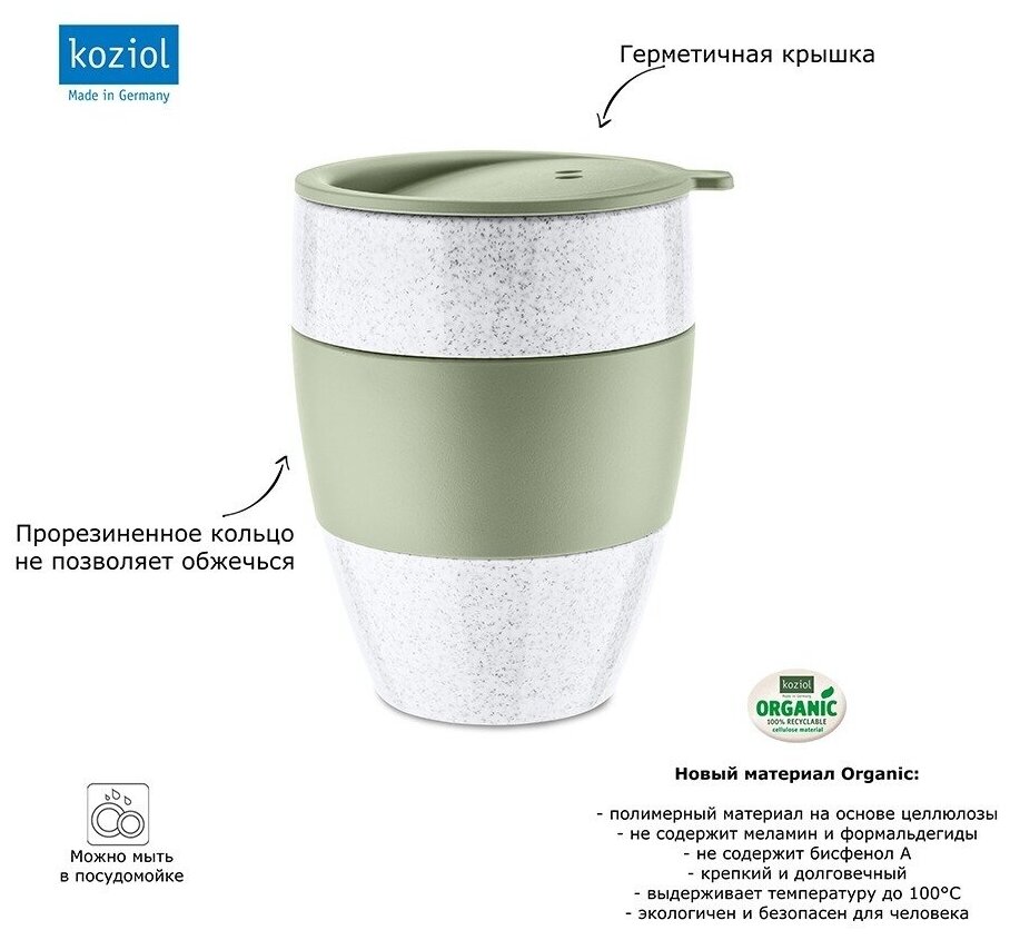 Купить Термокружка Koziol AROMA TO GO 2.0 Organic, 400 мл, зелёная