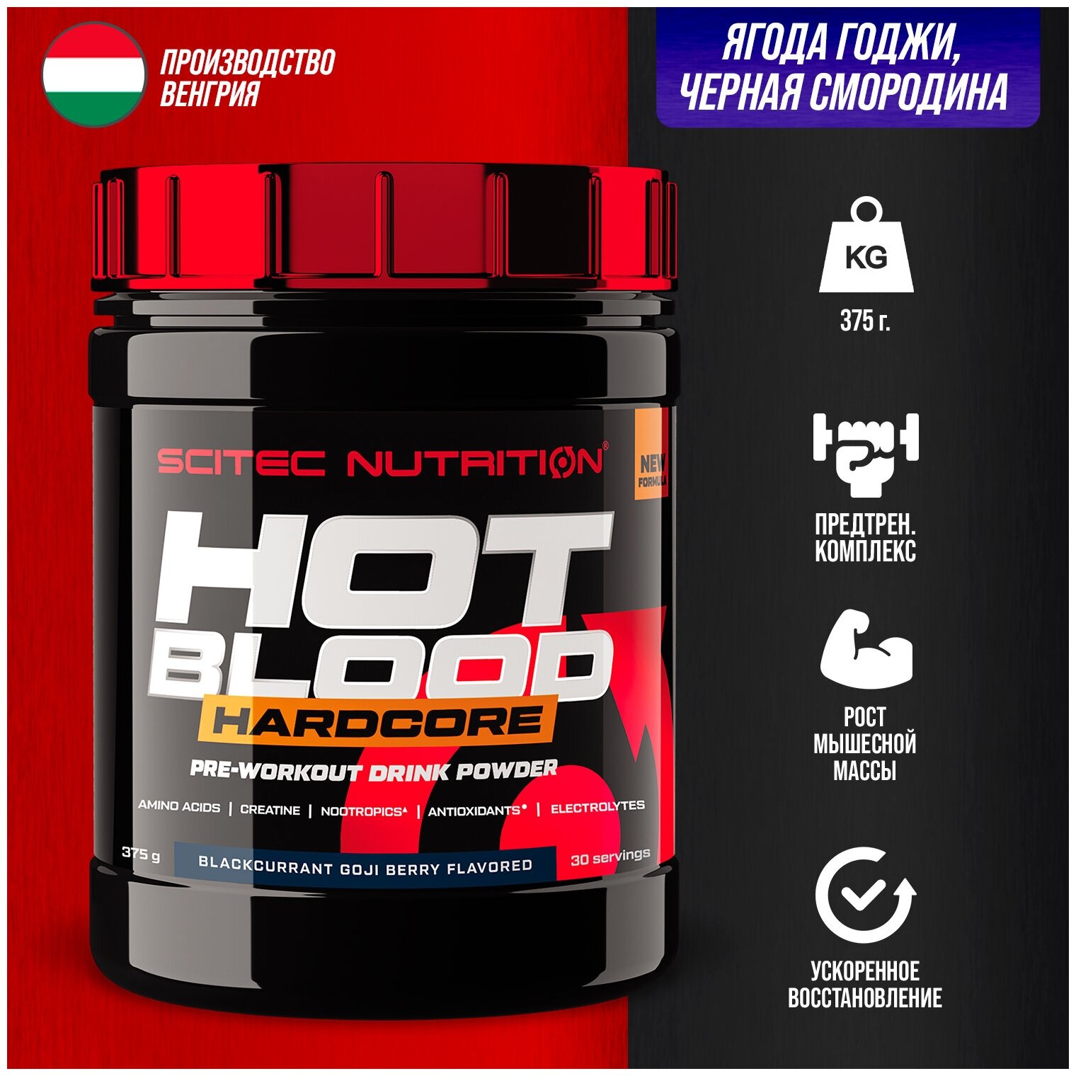 Hot Blood Hardcore Scitec Nutrition (375 гр) - Чёрная Смородина - Ягоды Годжи