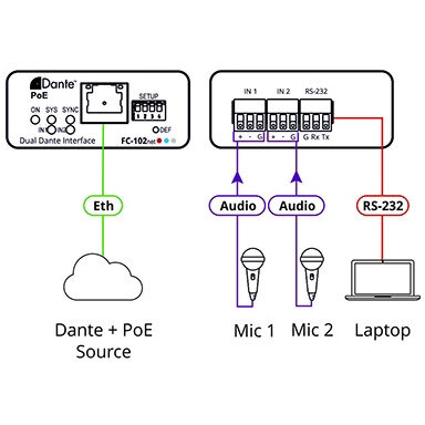 Kramer FC-102NET- Двухканальный кодер аудиосигнала в интерфейс Dante, поддержка PoE