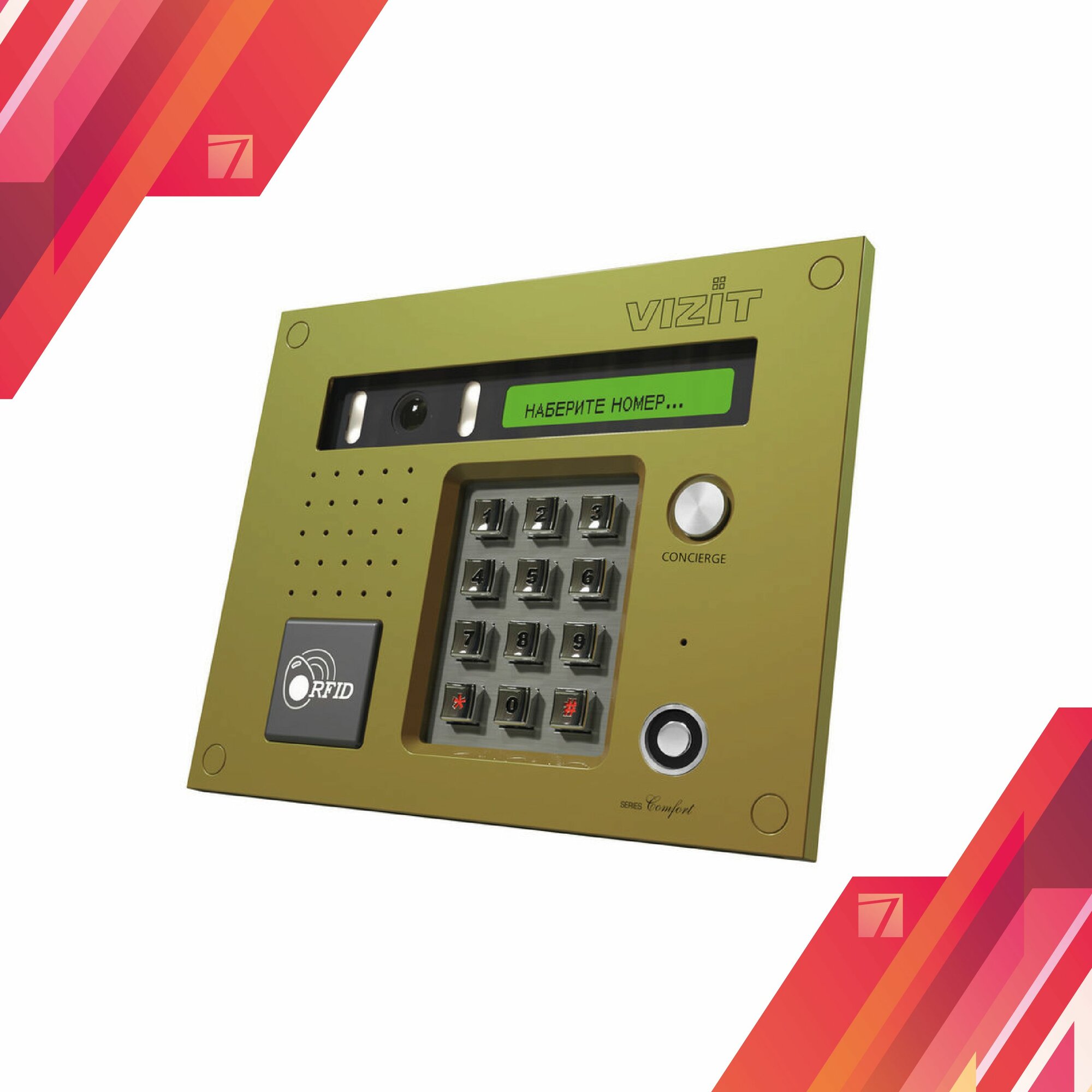 | Дополнительная информация | дуплексная громкоговорящая связь с абонентом; сообщения на дисплее - на языке страны-потребителя; кнопка прямого вызова консьержа |