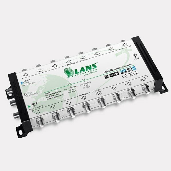 Мультисвитч 3 х 16 LANS 3 входа (2 SAT + 1 TV), 16 выходов, активный, с внешним блоком питания LS 316 интересное: