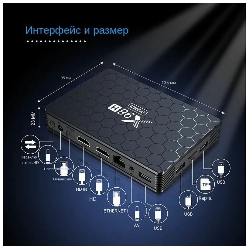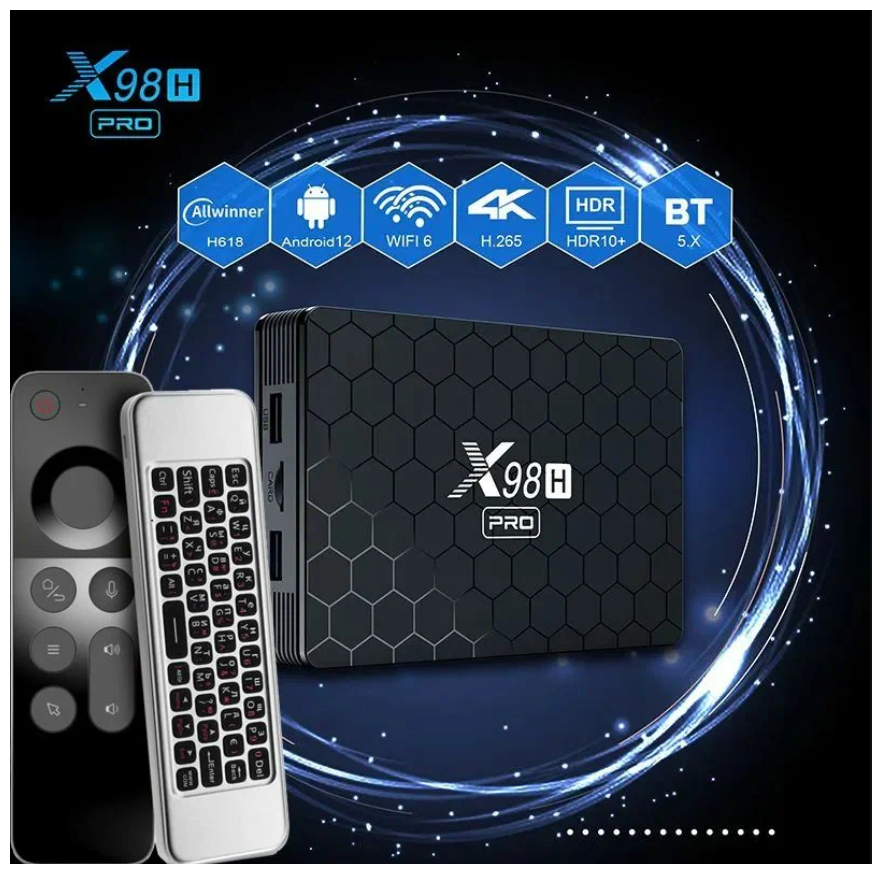 Комплект: Смарт ТВ приставка X98H PRO 4/64 Гб Allwinner H618 Android 12 + Air Mouse W3 с гироскопом и голосовым управлением интересное: