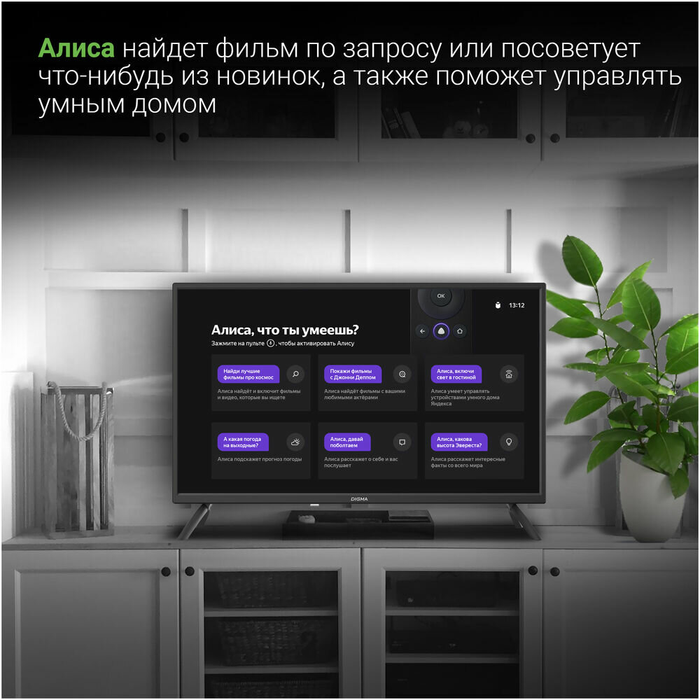 Телевизор LED Digma 32 DM-LED32SBB31 Яндекс.ТВ черный HD 60Hz DVB-T DVB-T2 DVB-C DVB-S DVB-S2 USB WiFi Smart TV