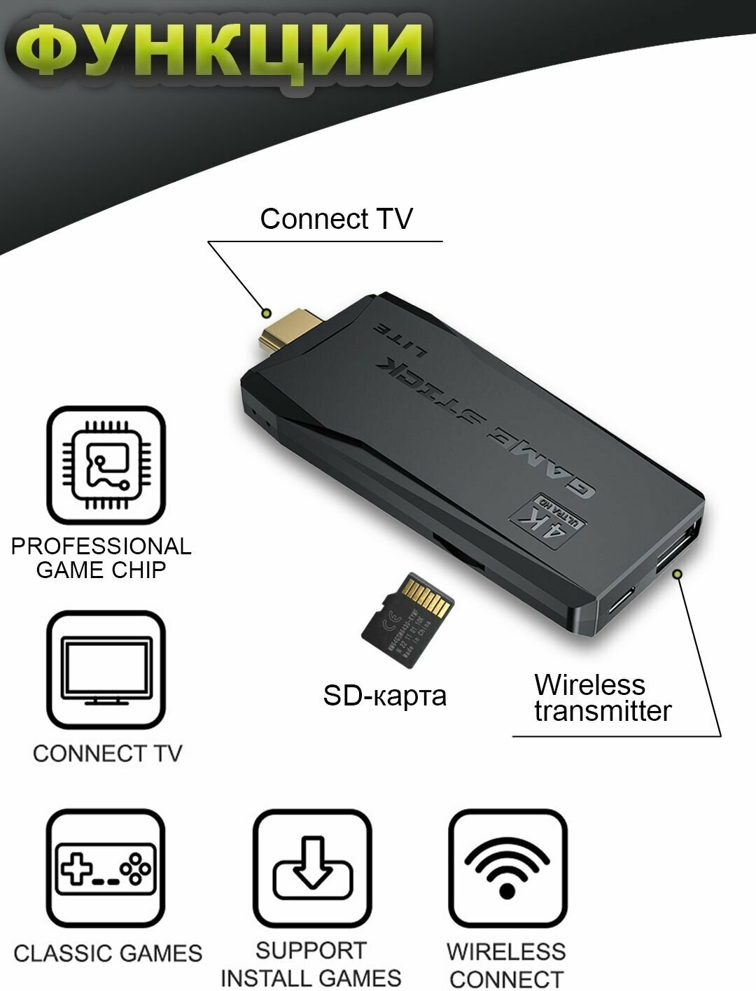 Игровая консоль приставка для телевизора Game Stick Lite/ ТВ/ TV приставка, 20 000 игр