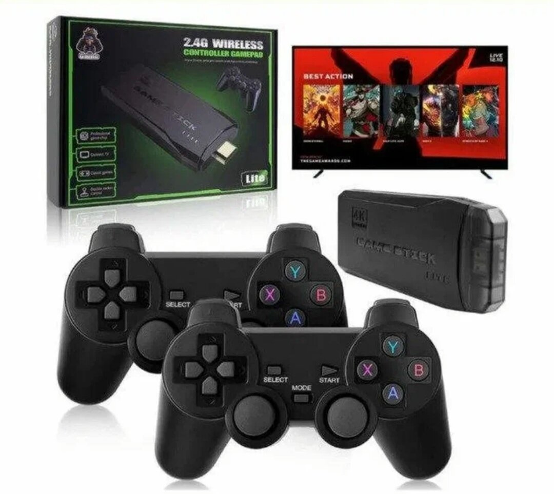 Игровая приставка, консоль Game Stick Lite 64Gb, 3555 игр, 4K, 2,4 ГГц, 8 бит, 16 бит, 32 бит
