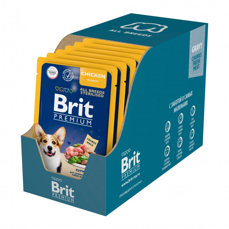 BRIT PREMIUM DOG ALL BREEDS STERILISED CHICKEN для взрослых стерилизованных собак всех пород с курицей в соусе (85 гр х 14 шт)