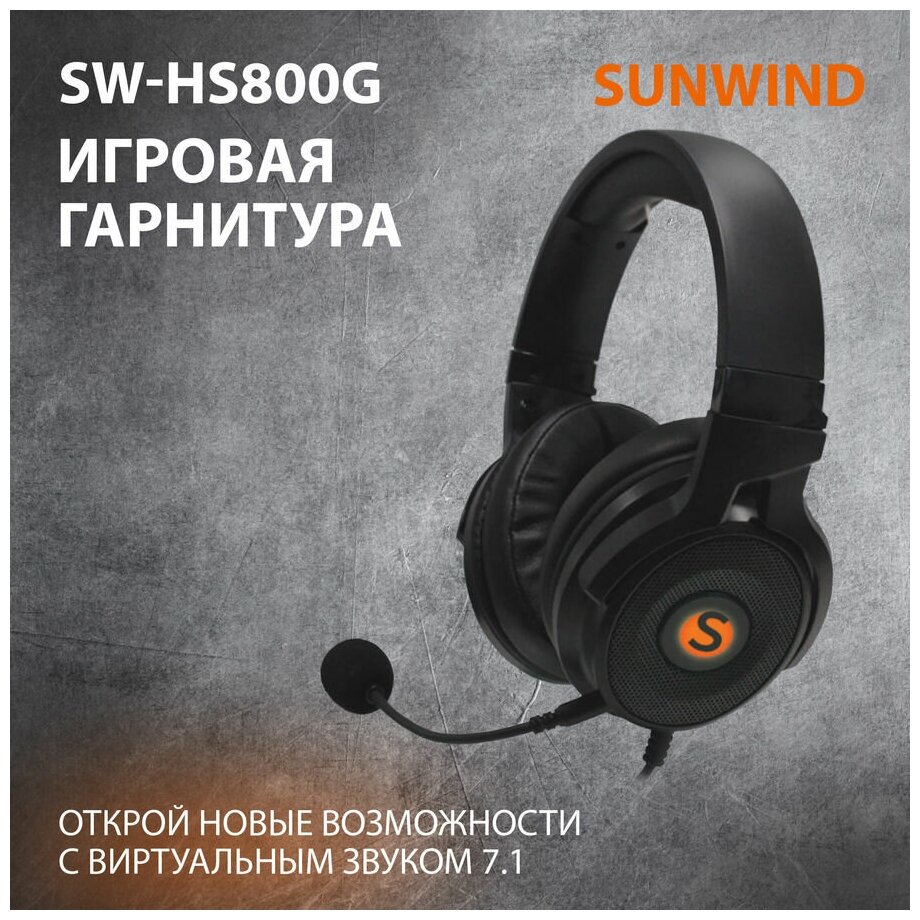 Гарнитура игровая SunWind SW-HS800G, для компьютера и игровых консолей, мониторные, черный [1422127]