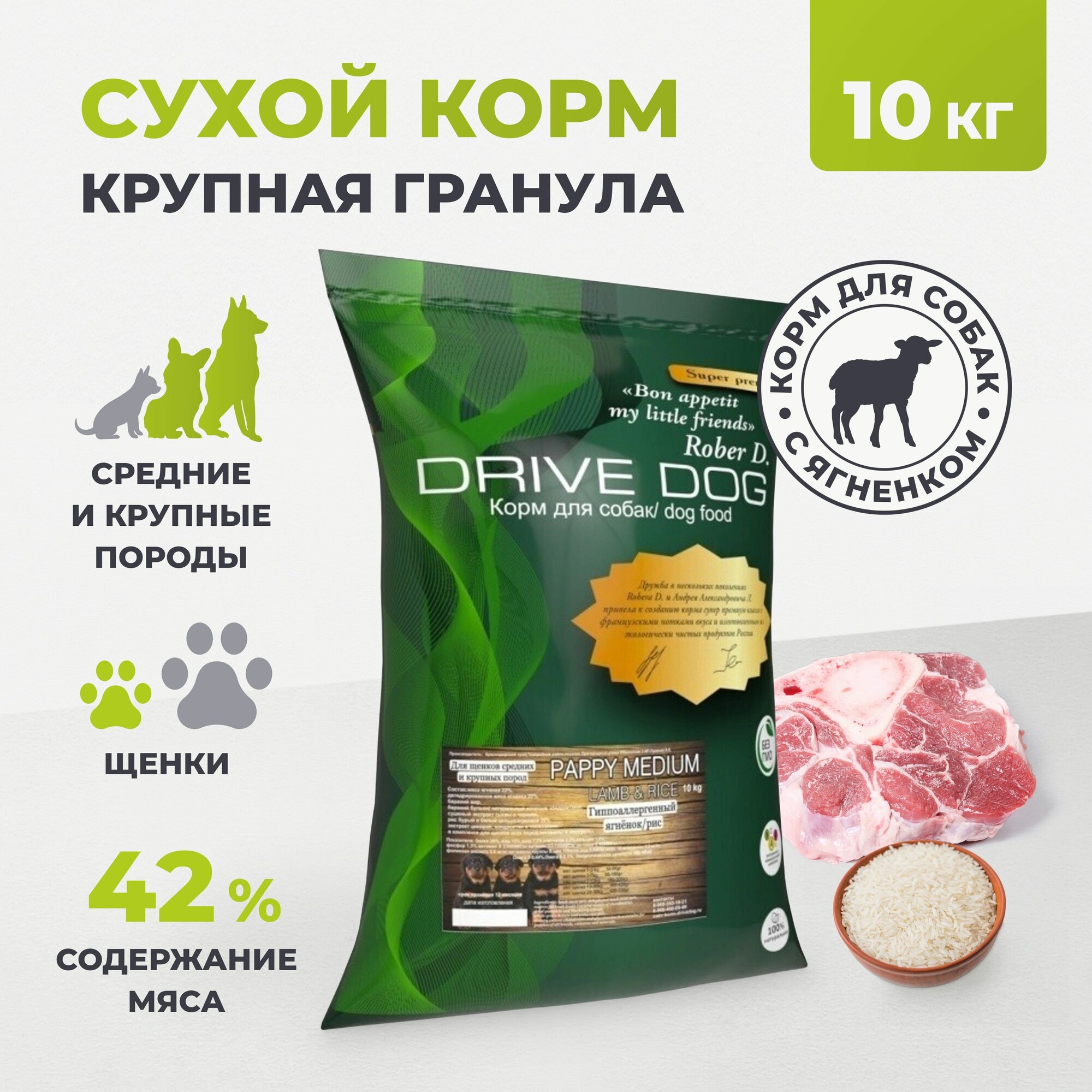 DRIVE DOG Puppy Medium полнорационный сухой корм для щенков средних и крупных пород ягненок с рисом 10 кг