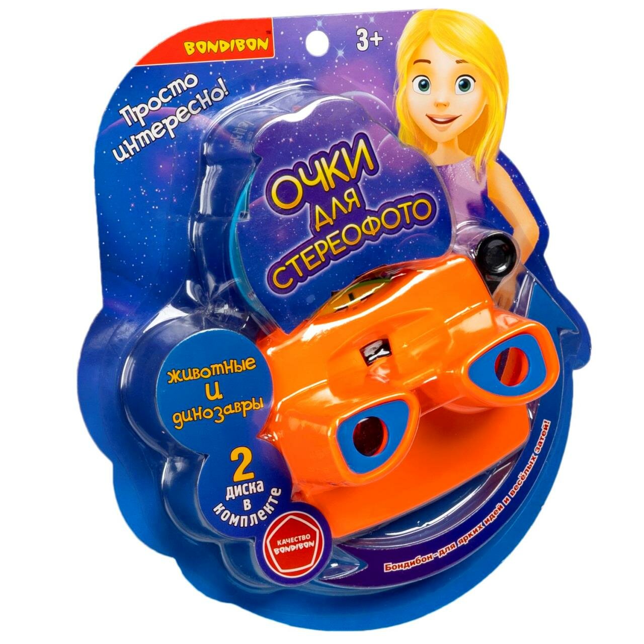 Очки 3D квадратные оранжевые тм Bondibon, цветные cтереодиапозитивы 2 диска со слайдами животные и интересное: