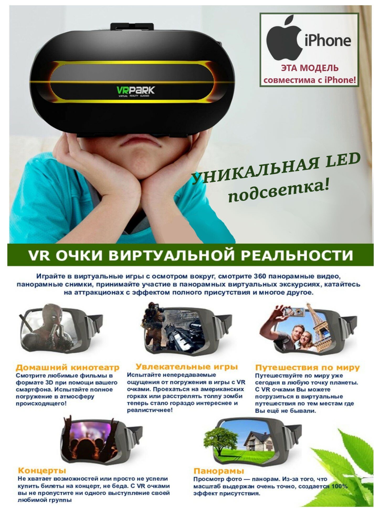 Купить Очки виртуальной реальности с наушниками и LED подсветкой. 3D очки для телефона!