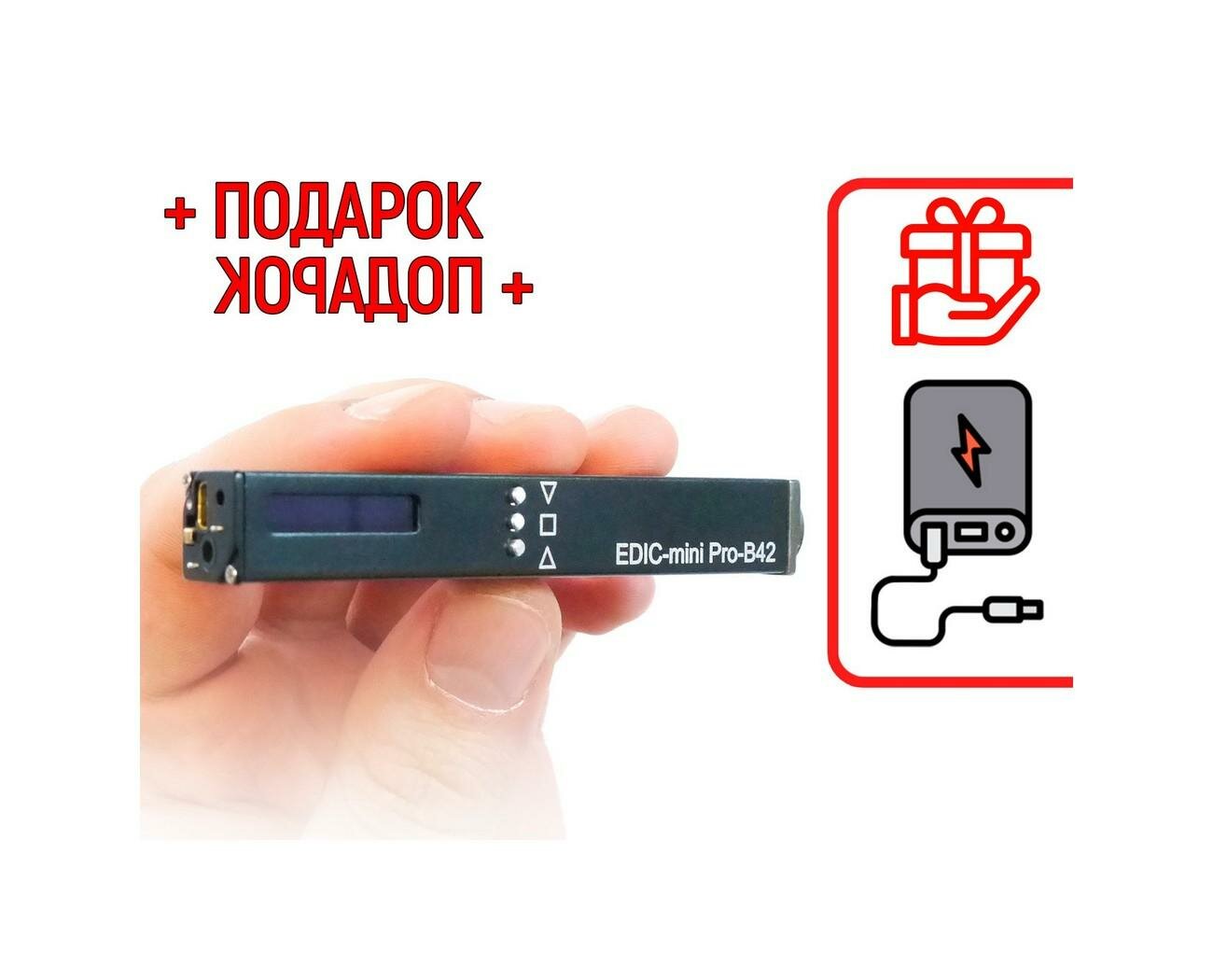 Диктофон для записи голоса Edic-мини PRO-B42 (300h) (O43843MI) + подарок (Power-bank 10000 mAh) - автоматическая запись по звуку (маленький диктофон интересное: