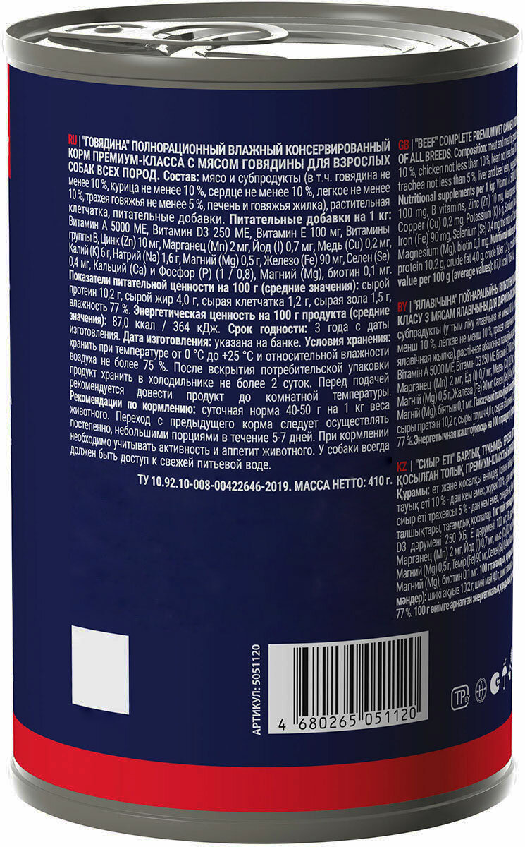 | Дополнительная информация | Перед подачей рекомендуется довести продукт до комнатной температуры. Переход с предыдущего корма следует осуществлять постепенно, небольшими порциями в течение 5-7 дней. При кормлении необходимо учитывать активность и аппетит животного. У питомца всегда должен быть доступ к свежей питьевой воде. |