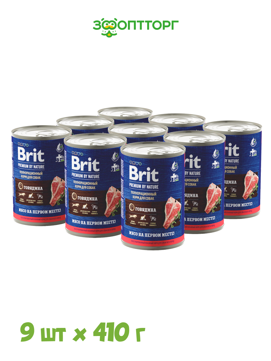 Brit Premium by Nature Корм консервированный с говядиной для взрослых собак всех пород, 410 гр, 9 штук