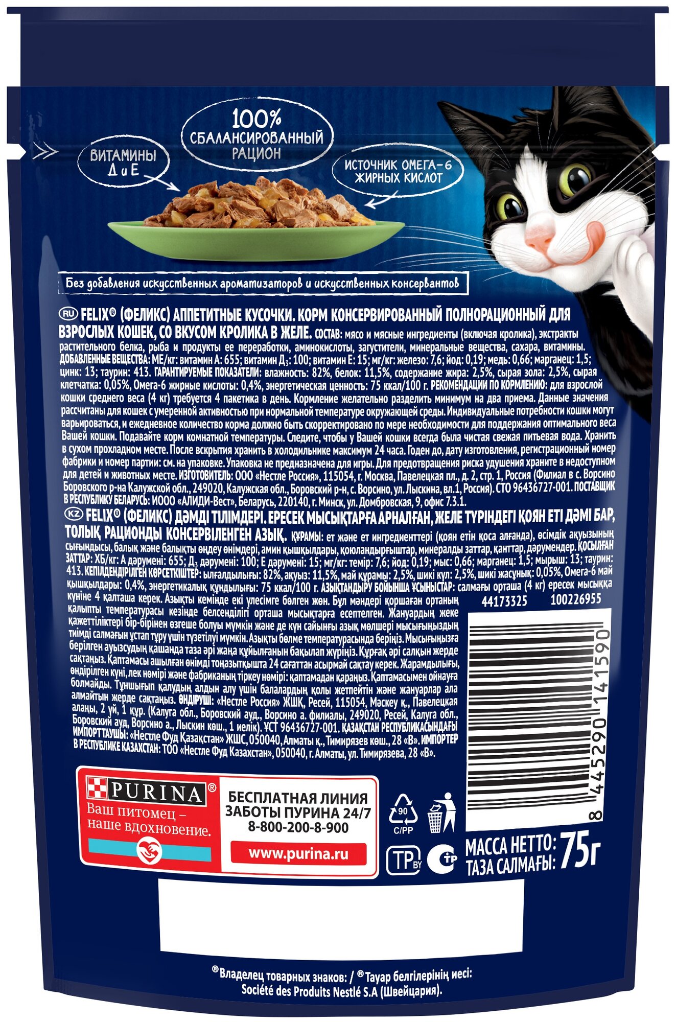 СохранитьFelix Аппетитные Кусочки влажный корм для взрослых кошек всех пород, кролик в желе (26шт в уп) 75 гр интересное: