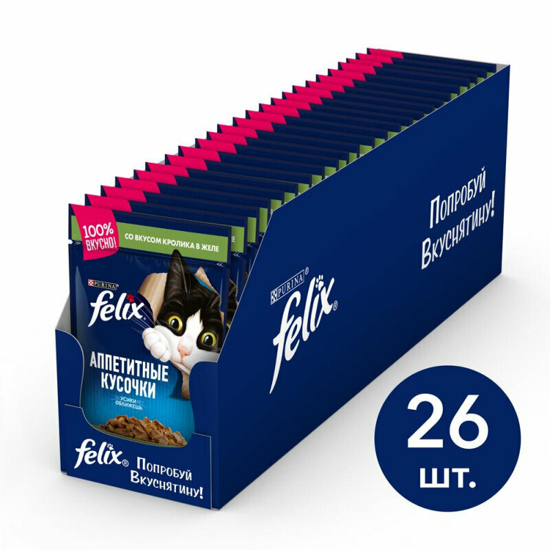 Влажный корм для кошек Felix Аппетитные кусочки в желе с кроликом 26шт.*75г